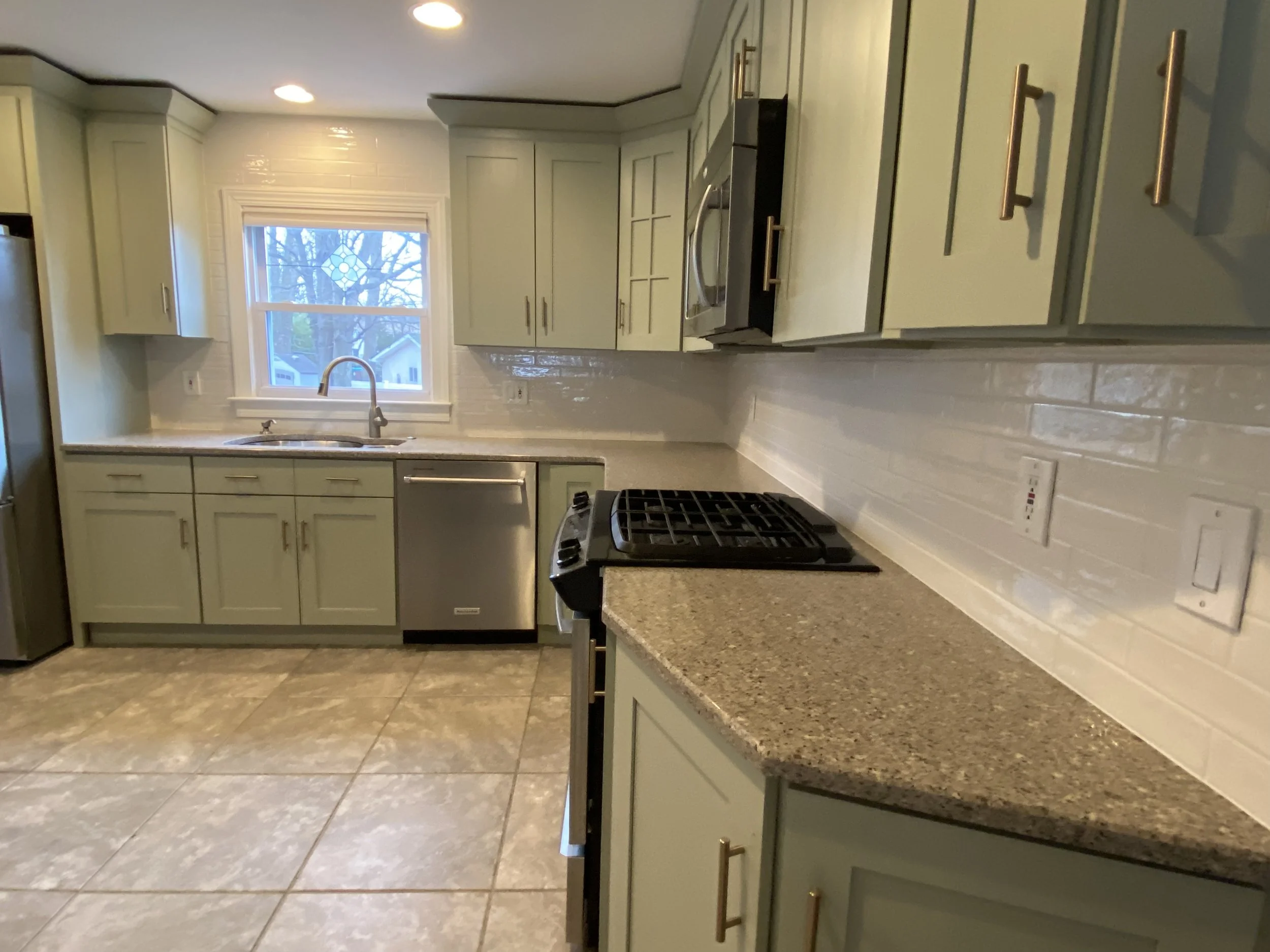At this time, we focus on kitchen tilework, including backsplashes and floors. If you're planning a full kitchen remodel, we’re happy to refer you to trusted partners.